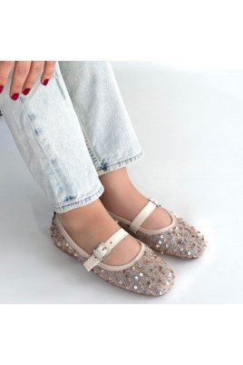 Lossa Bej Süet Kemerli Babet Ayakkabı