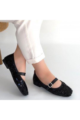 Zaty Siyah Süet Siyah Pullu Babet Ayakkabı