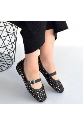 Moden Siyah Süet Babet Ayakkabı