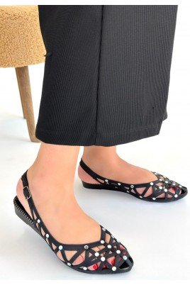 Zaty Siyah Süet Siyah Pullu Babet Ayakkabı