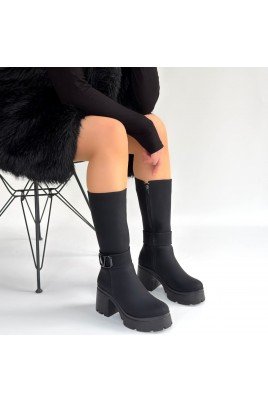 Tekja Siyah Süet Topuklu Çizme