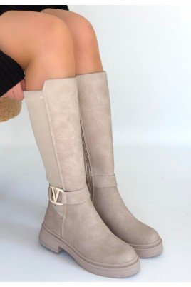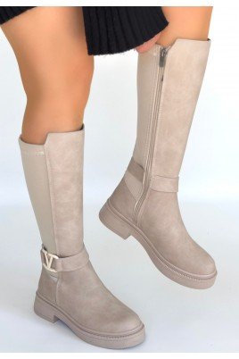 Roksa Acı Kahvei Cilt Topuklu Çizme