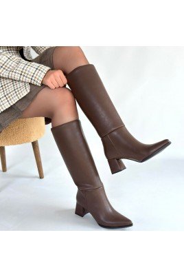 Zelya Kahverengi Cilt Topuklu Çizme