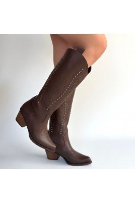 Moki Kahverengi Cilt Topuklu Çizme