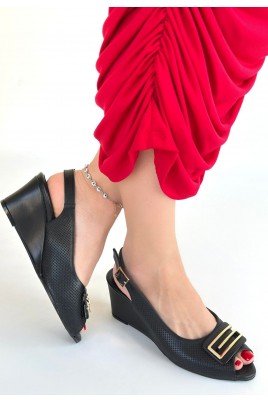 Mamba Siyah Cilt Dolgu Topuk Ayakkabı