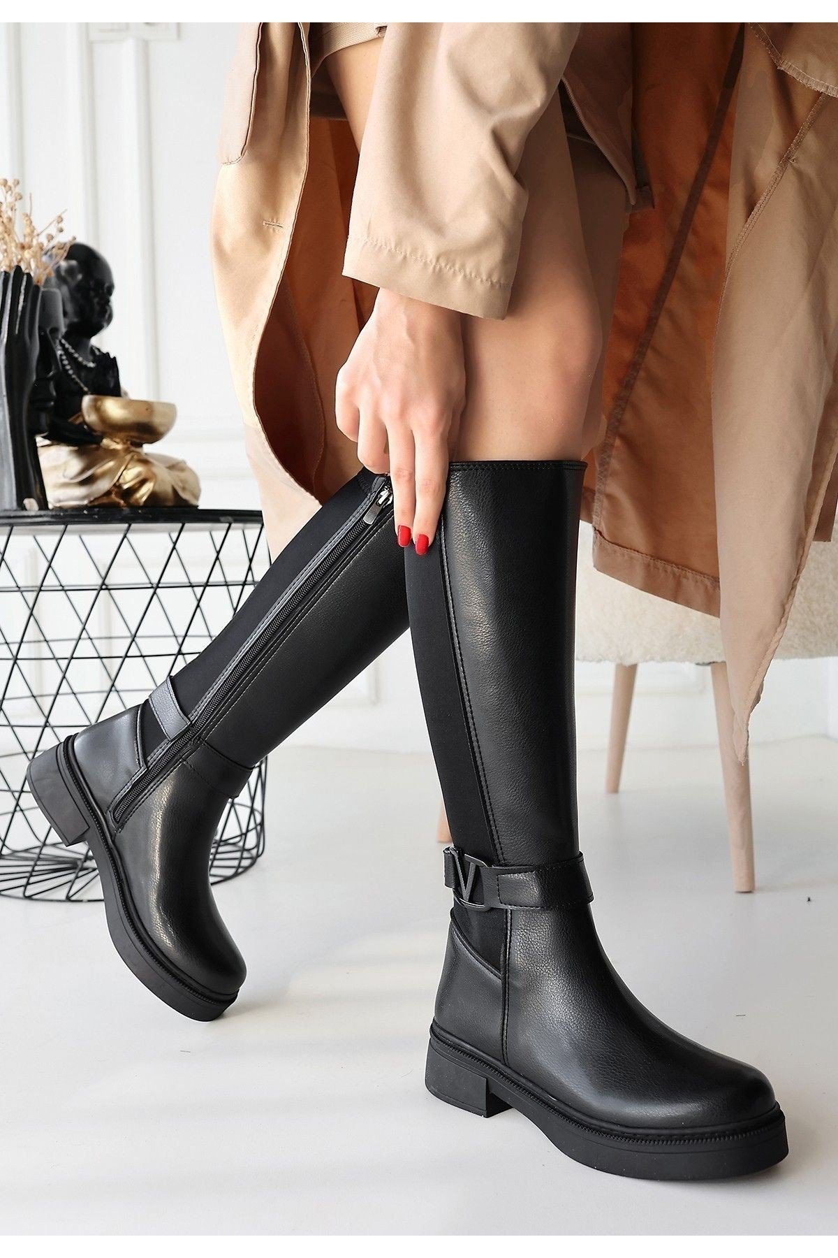 Detay: Topuklu Yandan Fermuarlı Diz Altı Çizme