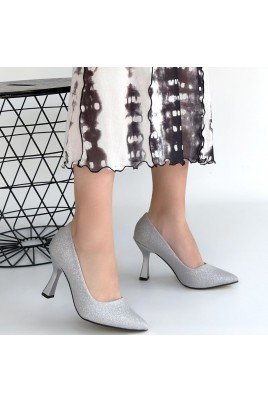 Joga Gümüş Saten Simli Topuklu Ayakkabı