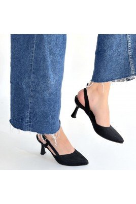 Joga Siyah Saten Simli Topuklu Ayakkabı