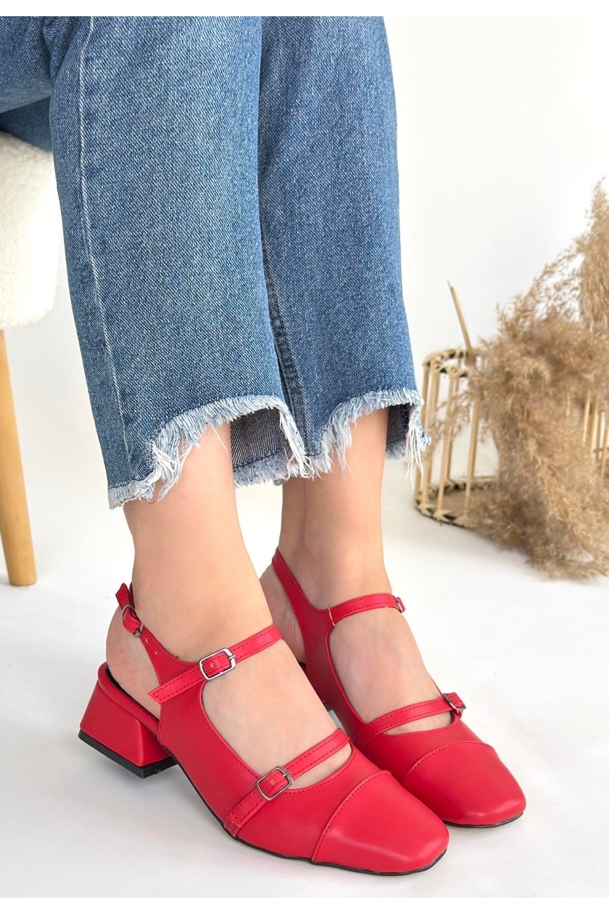 Desniy Kırmızı Cilt Topuklu Ayakkabı