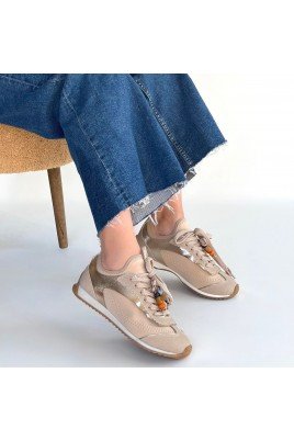 Riaf Bej Cilt Bağcıklı Spor Ayakkabı