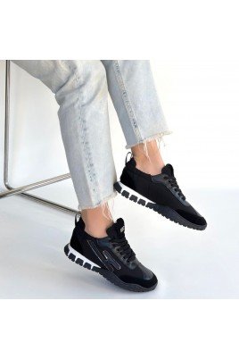 Wody Siyah Cilt Simli Bağcıklı Spor Ayakkabı