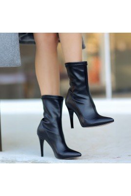 Linka Siyah Süet Gümüş Boncuk İşlemeli Bot
