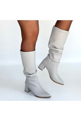 Pitay Bej Cilt Topuklu Çizme