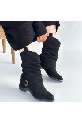 Canty Siyah Süet Körüklü Topuklu Çizme