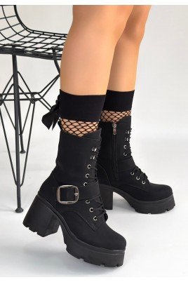 Linma Siyah Nubuk Bağcıklı Topuklu Bot