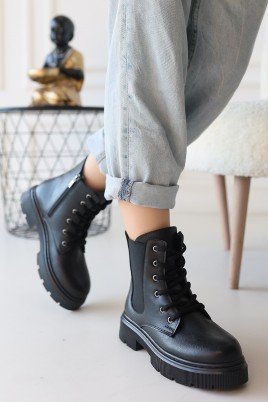 Linka Siyah Süet Gümüş Boncuk İşlemeli Bot