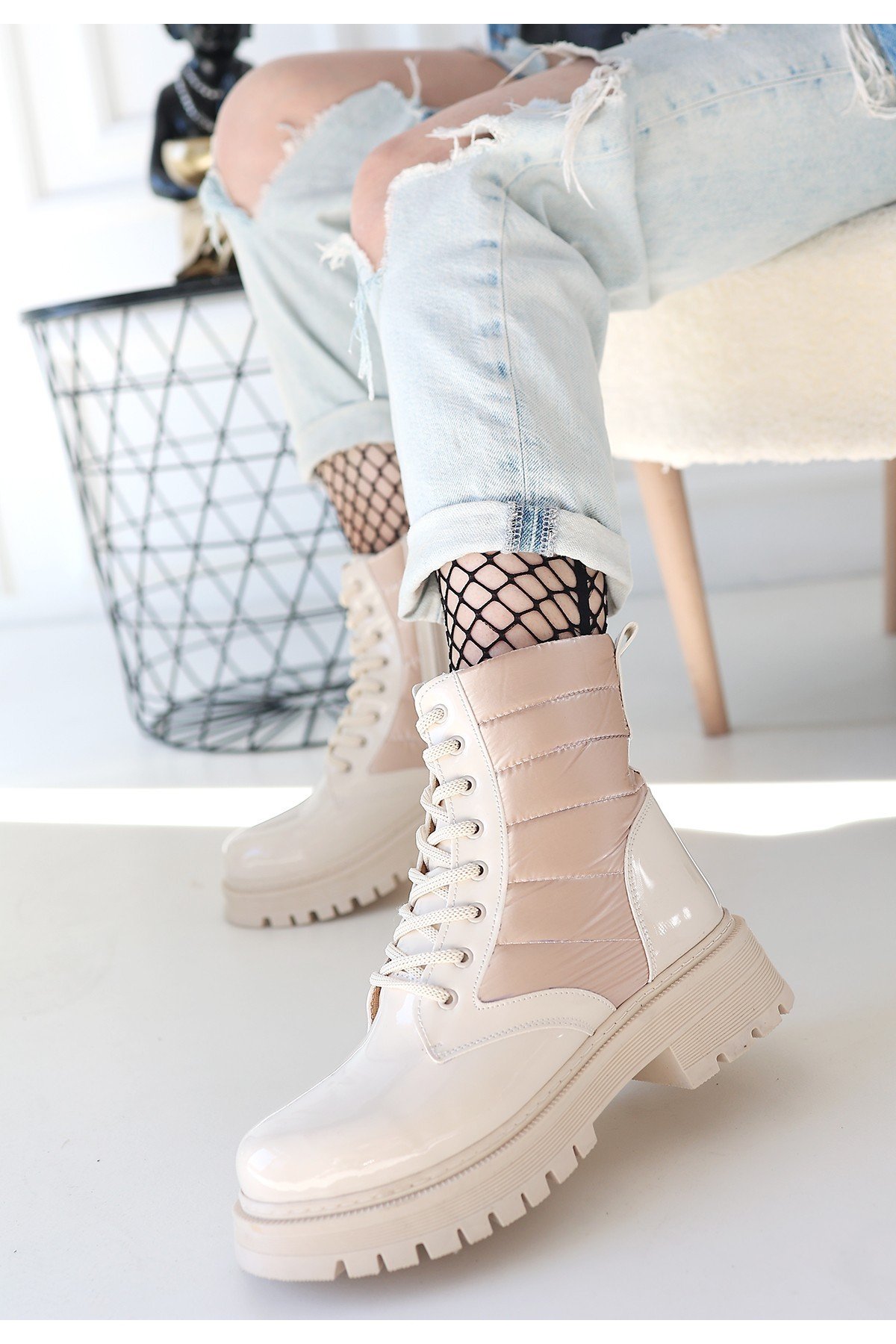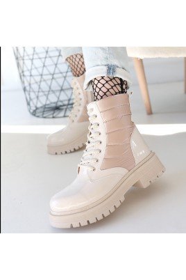 Loora Beyaz Rugan Desenli Topuklu Bot