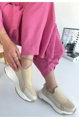 Finna Bej Cilt Bağcıklı Spor Ayakkabı