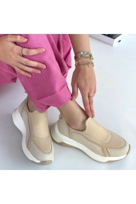 Junda Bej Cilt Bağcıklı Spor Ayakkabı