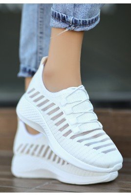 Yier Beyaz Cilt Bağcıklı Spor Ayakkabı