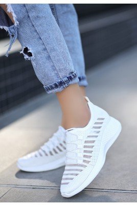 Tawen Beyaz Cilt Bağcıklı Spor Ayakkabı