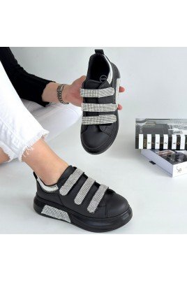 Yeniİstek listesine ekleReview (0)Kadın Sneaker Siyah Cilt Bağcıklı Günlük Spor Ayakkabı Simli₺1.615Fiyat