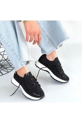 Rimay Siyah Cilt Boncuk İşlemeli Spor Ayakkabı