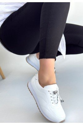 Natte Beyaz Cilt Bağcıklı Spor Ayakkabı