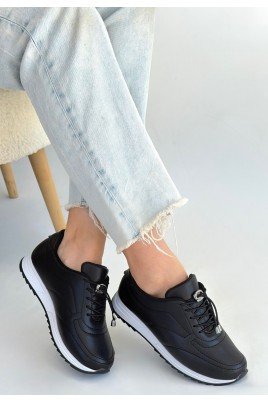 Junda Siyah Cilt Bağcıklı Spor Ayakkabı