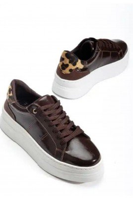 Wody Bej Cilt Simli Bağcıklı Spor Ayakkabı