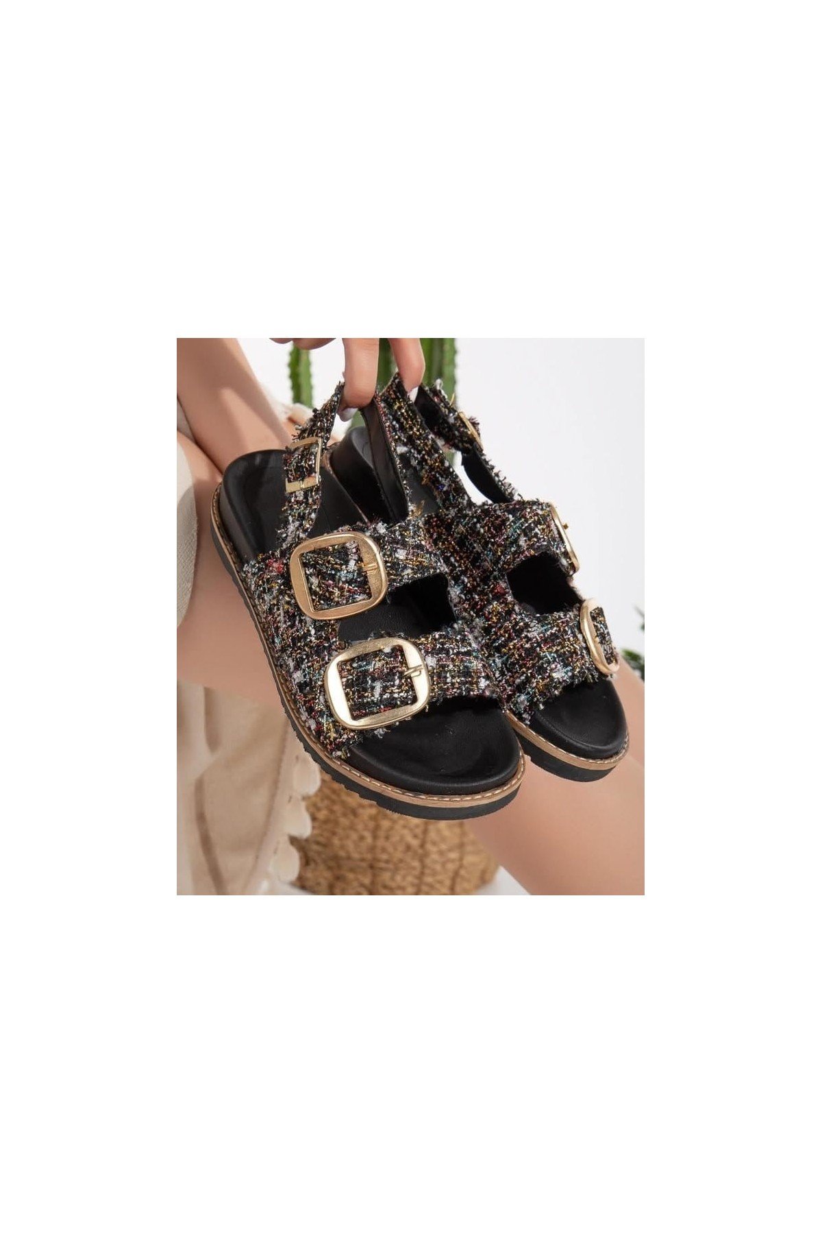 Saide Siyah Cilt Cırt Cırtlı Sandalet