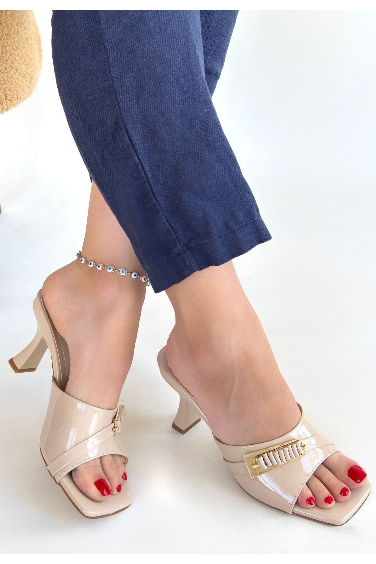 Loera Sarı Nubuk Çift Tokalı Terlik