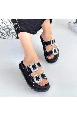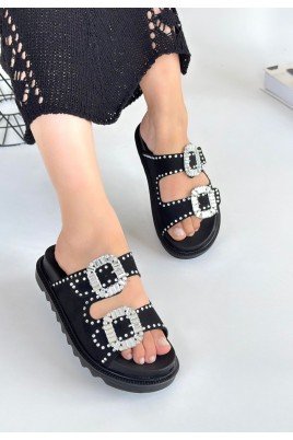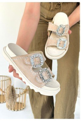 Edaj Kahverengi Nubuk Boncuk İşlemeli Terlik