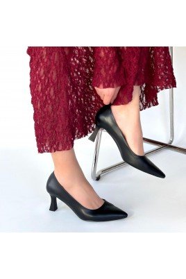 Mırta Siyah Cilt Topuklu Ayakkabı