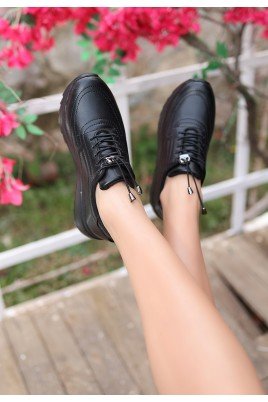 Romy Siyah Cilt Bağcıklı Spor Ayakkabı