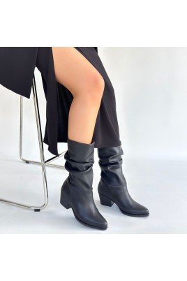 Yior Siyah Cilt Topuklu Bot