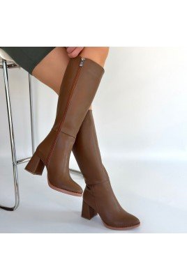 Detay : Topuklu Yandan Fermuarlı Diz Altı Çizme