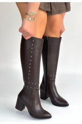 Detay: Topuklu Diz Altı Yandan Fermuarlı Çizme